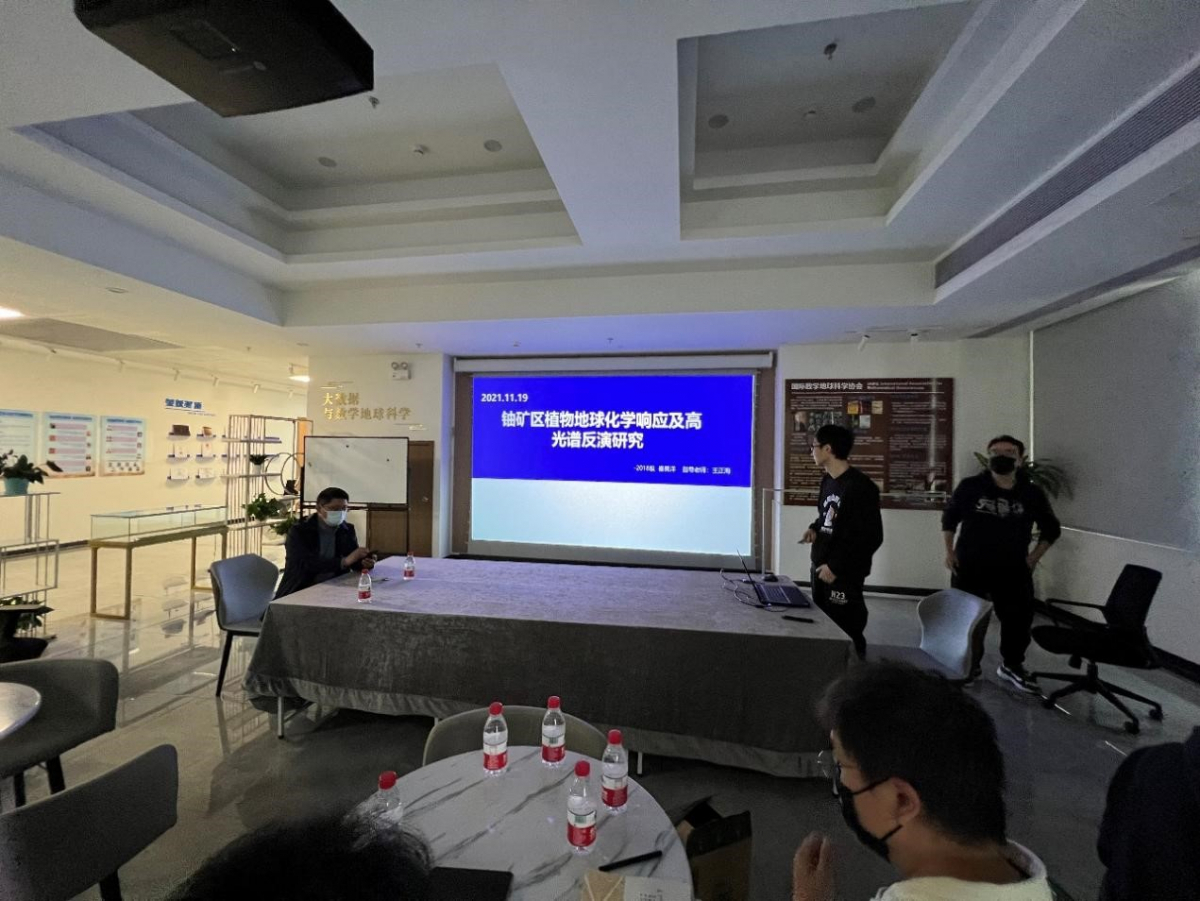 秦昊洋博士的汇报主题是“铀矿区植物地球化学响应及高光谱反演研究”,汇报了植物地球化学与高光谱遥感相结合的案例与取得的研究成果。
