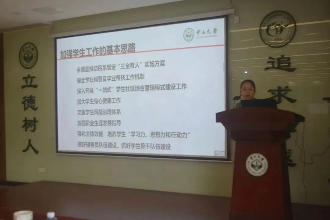 党委副书记张照同志传达了余敏斌副书记专题报告精神,结合学校学生工作会议的精神和学院工作实际,解读了学校的“三全育人”和“五育并举”等措施,介绍了七大学生成长支持体系的建设。针对目前学院在学生工作的现状,她汇报了学院在思想教育体系、学业预警体系、身心健康体系、美育工作体系等方面开展的系列工作,指出未来学院将继续强化学工队伍建设,加强师生联动,力争把学生工作做细做深。