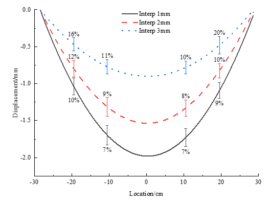 传感器的回传数据分为加速度与角度,即,有两种方法可以获得隧道变形位移:一是利用加速度经过时间域二次积分获得位移,二是利用测点角度先插值获得全部位置角度再几何积分。由于隧道长周期变形过程中加速度的低频特性,其零点漂移误差无法由常规的、旨在去除低频的处理手段进行消除,进行时间域二次积分将导致误差累积,误差较大。而由于角度数据本身的精度特性,可以将隧道模型进行差分,以安置了MEMS传感器处的倾斜角度来进行β样条插值,获得所有差分单元的倾斜角度,再利用几何运算获得各个差分单元两端的沉降差,再进行几何积分。经过验证该方法得到的估计位移与实际位移较接近,可行性较高。