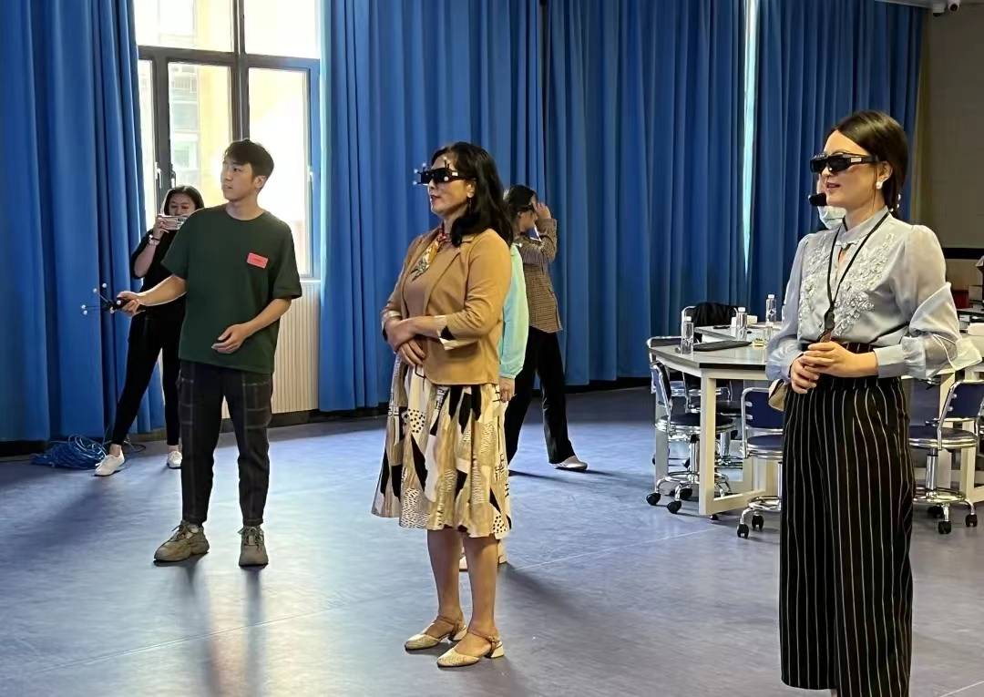 交流过后我院志愿者(研究生廖林峰)向来访者展示了虚拟仿真实验室并邀其体验实验室的仿真教学内容,还邀请其参观了我院地震台网实时数据展示区。