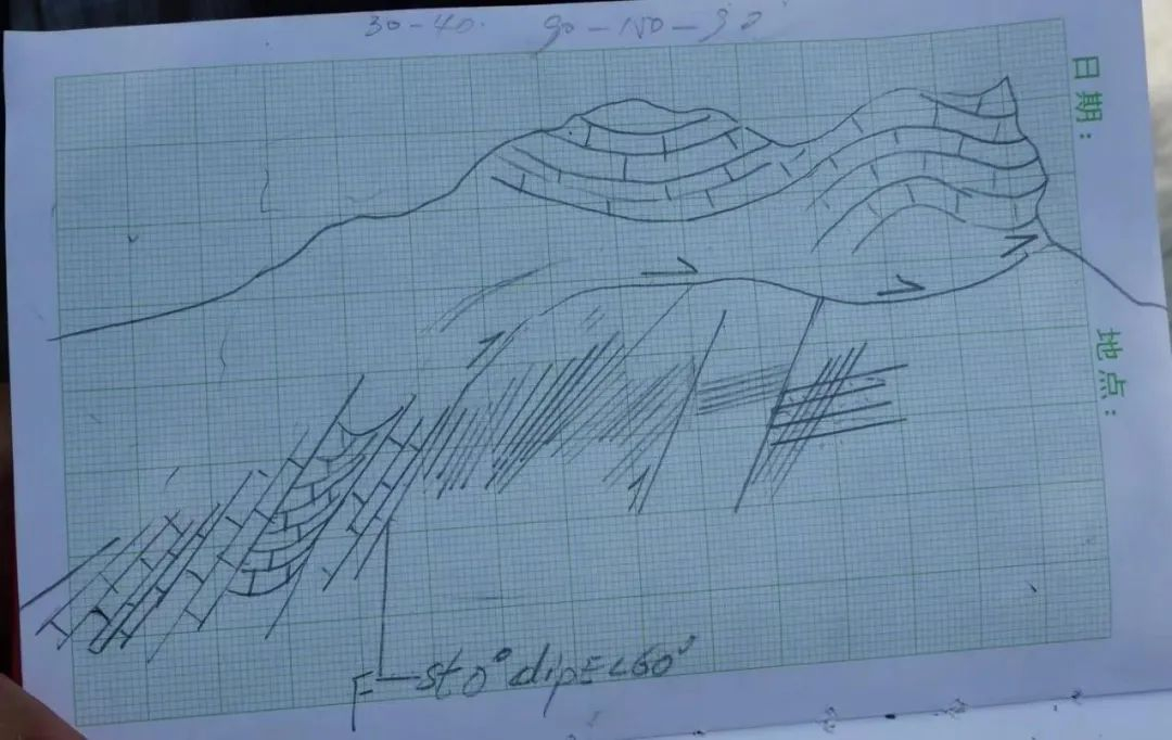 推覆体野外信手剖面图(张珂老师绘)