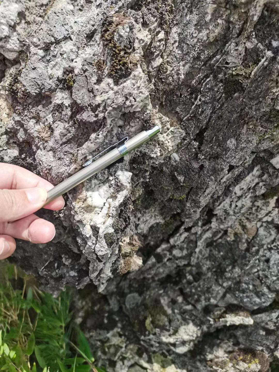 随着路途延长,步伐上上下下,视角的高低起伏,每一幕都有不同的风景,每一次定格都是崭新的记忆。豆粒灰岩和鲕粒灰岩藏在沿途被灰土覆盖的岩壁上,在视觉的深度体验和老师丰富的讲解下显得无比真实——这也是本次实习让同学们获益最大的地方。让我们感知了每一块岩石的生生世世,经历的沧海桑田。