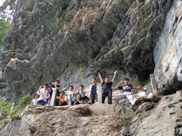 在“野人洞”旁的石壁上,老师与同学们对攀岩跃跃欲试,攀登山顶的脚力,生于欲穷千里目的壮心和不到长城非好汉的意志,展现了地科人的冒险与挑战精神。希望同学们在未来的学习中也能保持着这种挑战精神。