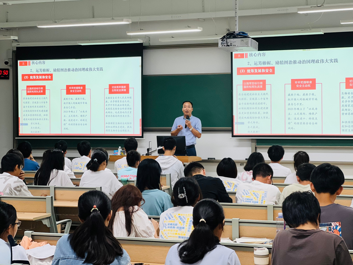 何晓钟书记做了题为《喜迎二十大,精读<习近平谈治国理政>第四卷》的专题报告。何书记围绕第四卷概况、局势背景、核心内容和精髓要义四个部分进行了介绍,给同学们分享了他读第四卷的新的体会。何书记带领同学们回顾了四卷中习近平总书记关于治国理政的总体思路,结合国内外复杂局势分析,详细解读了四卷产生的背景和重要意义。他指出,在世界风云变幻的百年大变局的特殊时期中,党领导中国人民取得了脱贫攻坚战的胜利,全面建成小康社会,并在建党100周年的光辉时刻,形成了党的历史上第三个决议,与时俱进发展马克思主义,为下一个百年建设提供了理论支持。四卷的内容,无不在回应“中国之问”、“世界之问”、“人民之问”、“时代之问”,是马克思主义中国化、时代化的重要体现。四卷讲清了中国共产党为什么“能”、马克思主义为什么“行”、中国特色社会主义为什么“好”;讲清楚了中国共产党过去为什么能够成功、未来怎样才能继续成功的核心密码。何书记号召大家在新征程上,要深刻领悟“两个确立”的决定性意义,增强“四个意识”、坚定“四个自信”、做到“两个维护”,坚定不移用习近平新时代中国特色社会主义思想武装头脑,成为堪当民族复兴重任的时代新人。