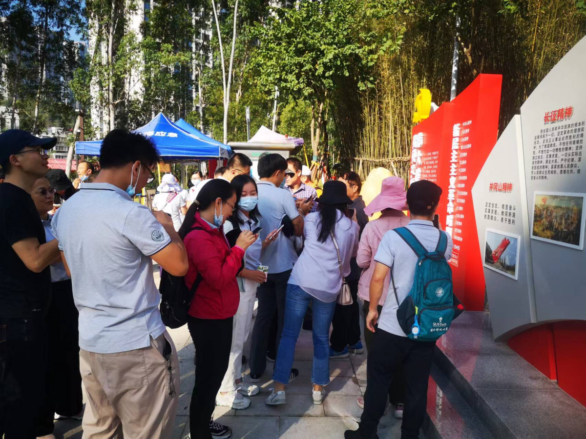 党员们每至一处宣传展板便驻足观看学习一个阶段的党史知识、参与知识竞答,通过点线面结合的红色文化空间回顾党的光辉历程,坚定了跟党走的信念与决心。