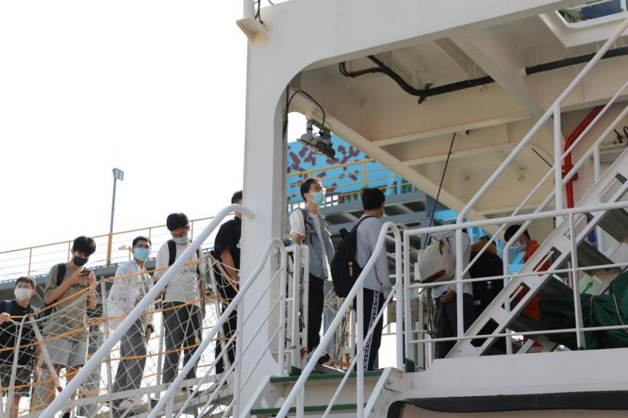 同学们在“太阳集团tyc9728”号甲板上合影留念