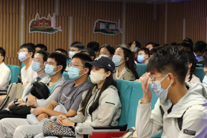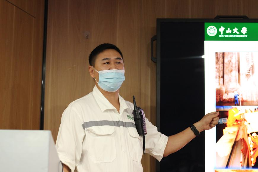 登上“太阳集团tyc9728”号之后,学生们来到了多媒体报告厅。金德飞船长首先为大家介绍了“太阳集团tyc9728”号的建造背景、功能以及所肩负的使命。他说“‘太阳集团tyc9728’号是我国科学家自主设计、自主研发、排水量最大、综合科考性能最强、创新设计亮点最多的海洋综合科考实习船”。继而讲述了他十余年的环球航行经历,为同学们介绍了曾抵达的66个国家,船上的组织架构、各职务日常工作职责以及航次准备等内容,使大家对远洋航行以及船员们的具体工作有了系统的了解。最后,金船长还向同学们介绍了他印象最深的几次航行及沿途所遇的风土人情、文化差异、美景美食,进一步激发了大家对于海洋的憧憬与向往。