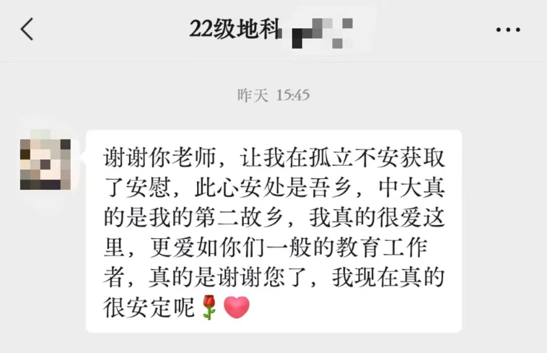 学工队伍密切关注学生需求,关心关爱学生,积极疏导学生情绪。学院辅导员人在珠海校区,心系南校园学生,与学生线上保持实时联系,多方沟通协调,替学生解决封控期间买药就医难题,鼓励安慰学生,收获学生真诚的感谢。