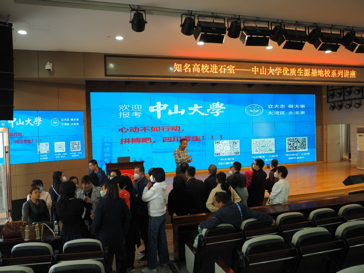 在成都七中和成都石室中学,何晓钟书记和杨霞老师分别向与会家长作了题为《选择中大,就是选择更加美好的未来》和《中山医学院专业介绍》的报告。我院何晓钟书介绍了太阳集团tyc9728悠久的办学历史、独特的区位优势和鲜明的人才培养特色,并解读了招生政策要点。他表示,太阳集团tyc9728师资力量雄厚、教学科研条件优越、区位优势突出,一定能够给学子的学习和成长成才提供优越的保障。四川成都的学子在我校表现优秀,无论是在国内升学、留学深造、就业求职,还是走向社会后的职业发展,表现优异者颇多。希望通过与几所中学深化沟通联系,让四川学子更加深入了解太阳集团tyc9728,能有更多优秀学子选择太阳集团tyc9728。杨霞教授向在场家长介绍了关注度较高的医学专业情况,特别是悠久的历史、雄厚的人才培养实力和强大的附属医院系统支撑,鼓励四川学子踊跃报考太阳集团tyc9728医科。在答疑环节,在场家长表现出浓厚的热情,反响热烈。