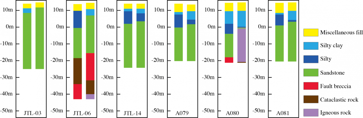 广州11号线某地铁站址建模实例表明:所建立的三维模型细致刻画了为该站址的地层和断裂结构(见图2),尤其是断裂内不同岩性的分布为地铁工程设计提供了精细的结构。该研究成果搭建了一个融合深度人工神经网络和MPS的三维地质建模框架,实现了小样本数据条件深度人工神经网络的复杂地质结构重建,突破了传统的MPS方法中局部优化的局限,为建立高精度三维地质模型提供了一个新思路。