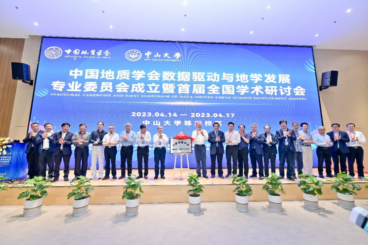 在开幕式的最后,大会举行了“中国地质学会数据驱动与地学发展专业委员会”揭牌仪式,陈春声书记、到会院士、领导及与会代表共同见证这一重要时刻。