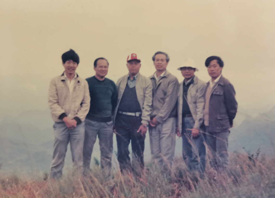 图5:黄玉昆(右三)与地质学系研究生在西樵山考察