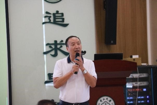 仪式开始,王岳军院长对各位校友的回校表示了热烈欢迎。他介绍了学院近些年的发展,同时对丘志力教授在中大地科开拓宝玉石研究方向、潜心教研三十多年所做出的贡献和无私付出表示充分肯定,对丘老师荣休的不舍和祝福。何晓钟书记表达了对丘志力教授为学院发展尽心竭力、无私奉献的高度赞扬和衷心感谢,并欢迎各位校友“常回家看看”。