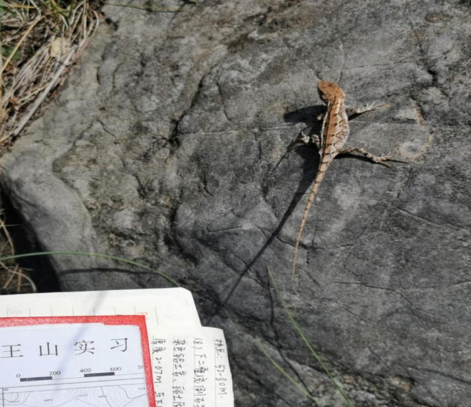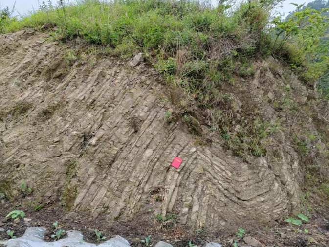 在野外的大山上,大自然的鬼斧神工,千万年的演化最终使得这里独具特色,山林之间遥相呼应,绵延群山又各有千秋。从小型尺度来说,这里拥有自震旦纪以来十分丰富的地层,蕴藏着多样的颜色,有碳质页岩的黑,也有方解石脉那无暇的白(如图1);不止有蔓延数公里的大型断层,还有一览无余的小型褶皱(如图2)。更为重要的是我们在野外不断的学习过程中增长见识,也提高动手操作的能力,将课堂内学习过的知识运用于野外大课堂,为培养自己成为一个真正的地质人而不懈努力。