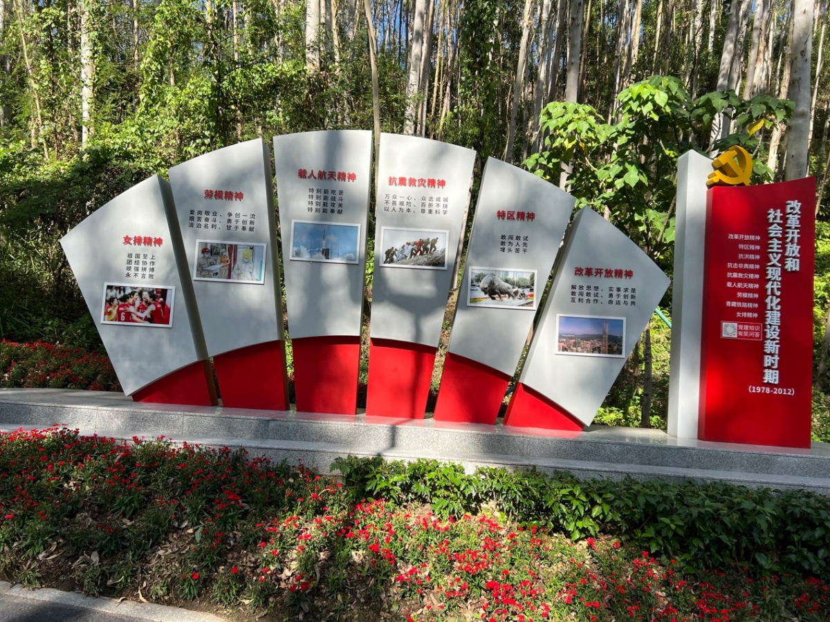 队伍一路盘山而上,伴随着不同时期中国共产党发展历程的宣传栏,大家深入学习了社会主义革命和建设时期、改革开放和社会主义现代化建设新时期、中国特色社会主义新时代的建党精神及其背后的感人故事。