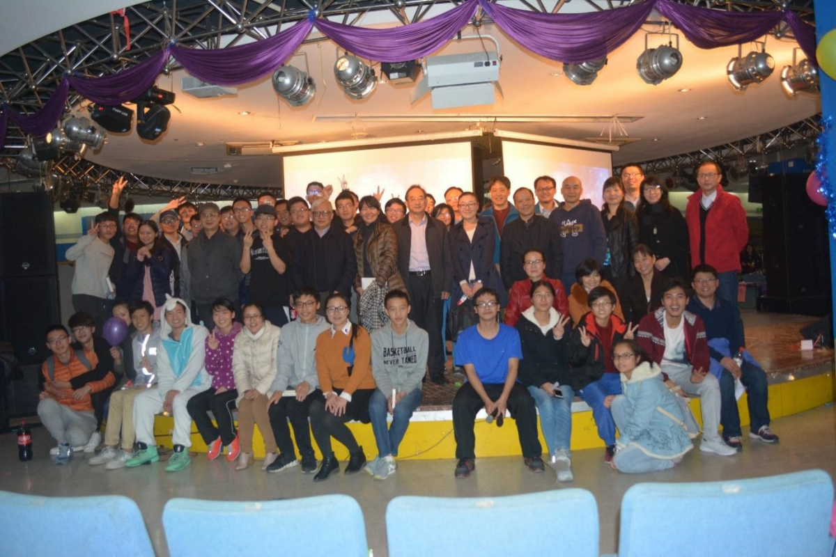 图13:汤连生、张珂、何俊国、邓迎春、何水莲等老师参加学生活动(2017年的元旦晚会)