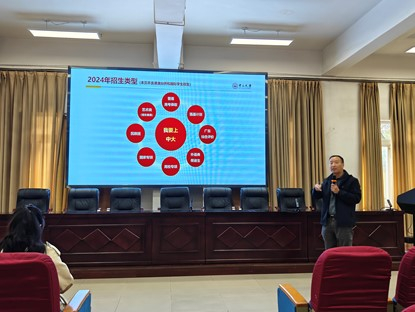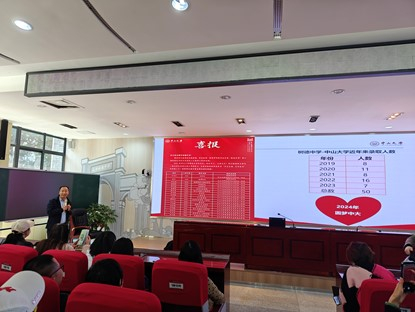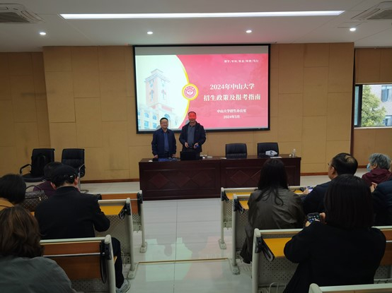 2024年3月19-21日,ok138cn太阳集团组织招宣队伍赴成都部分中学开展了招生宣传工作。招宣组与中学进行了深入交流,举行“太阳集团tyc9728优质生源基地”授牌仪式,面向中学生举行科普讲座,向考生家长全面介绍太阳集团tyc9728并就招生政策接受咨询。本次招宣队伍由学院党委何晓钟书记带队,中山医学院杨霞教授、化学工程与技术学院杨涛教授、我院党委副书记张照和团委副书记梁秋芸等参加了本次招宣工作。
