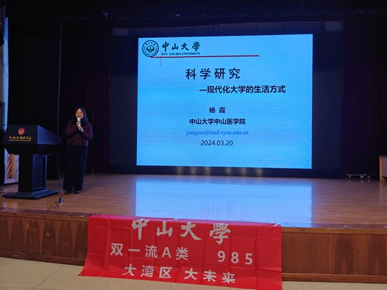 图:杨霞教授在成都外国语学校作科普讲座