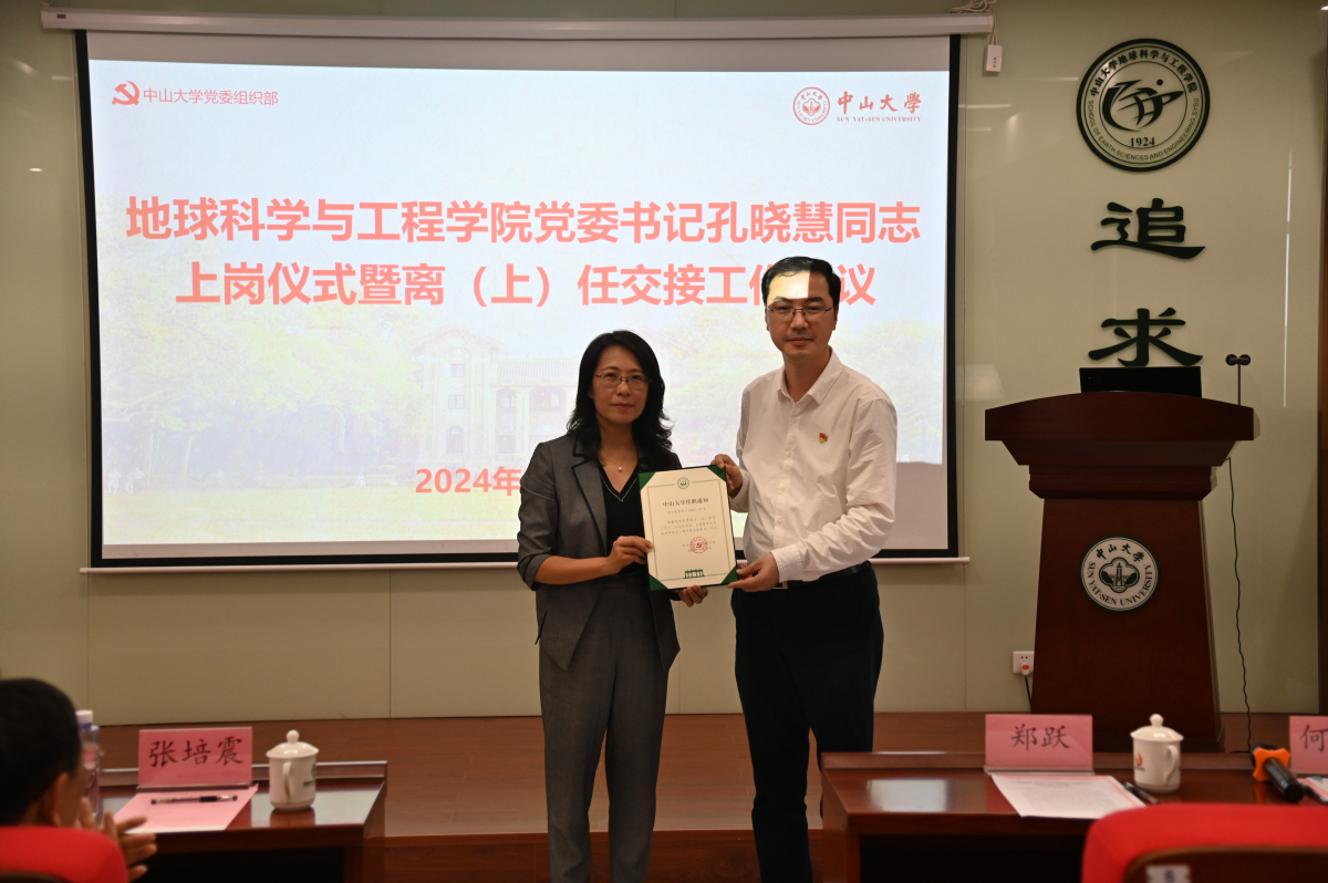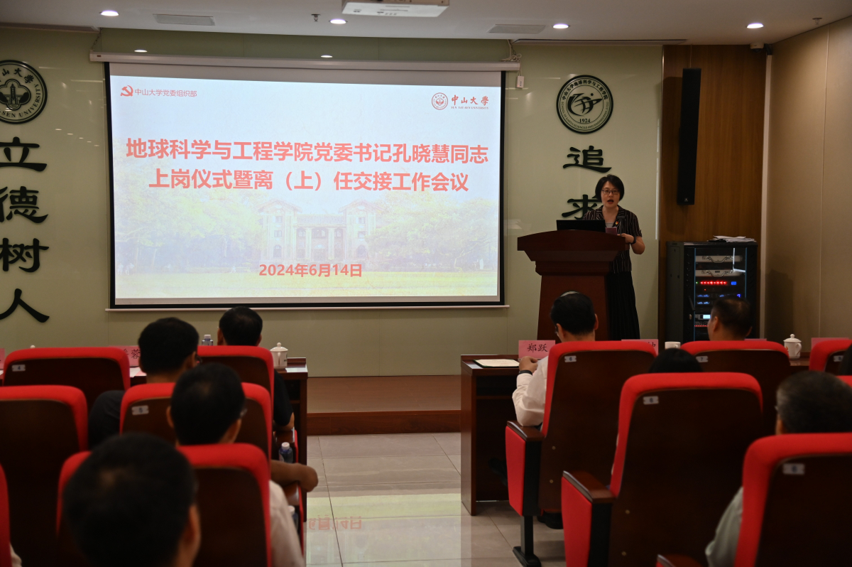 孔晓慧同志作履新发言。她表示,今年学校将迎来百年华诞,这也是她本人在中大工作的第30个年头,在这特殊的时刻来到与中大同龄的地科,她深感荣幸与责任重大。感谢历届前辈、领导、师生的共同奋斗,感谢何晓钟书记前期的扎实工作,未来她将以“忠诚、干净、担当”的标准要求自己,并此为新起点,担负起新使命,尽己所能、用心用情地服务师生。与学院班子成员齐心协力,带领全院师生共同营造干事创业的良好氛围和育人环境,为提升地球科学学科的前沿发展而接续奋斗!