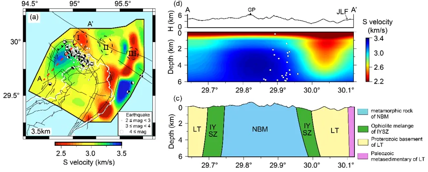 结合前人的地球物理研究,讨论南迦巴瓦地区深部物质上涌与浅层断裂活动的耦合作用,可能是驱动该区域快速隆升与强震频发的重要机制(图4)。该成果不仅深化了对青藏高原东缘碰撞前缘构造演化的认识,还为区域地震灾害评估提供了精细的地壳结构模型。