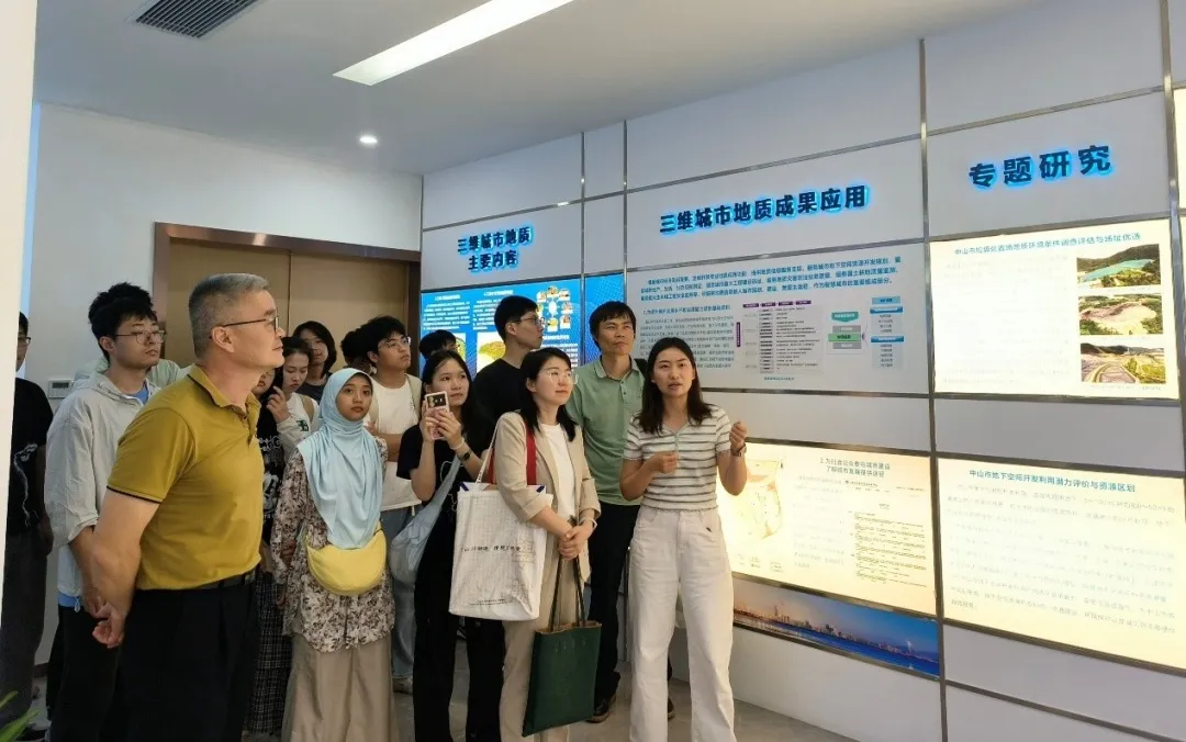在珠海地质调查中心,师生实地考察了岩土工程技术研究中心、地质灾害气象风险预警系统及城市地质大数据平台。技术人员以三维地质建模为例,展示了珠海市水文地质结构、软土分布及地面沉降监测成果。