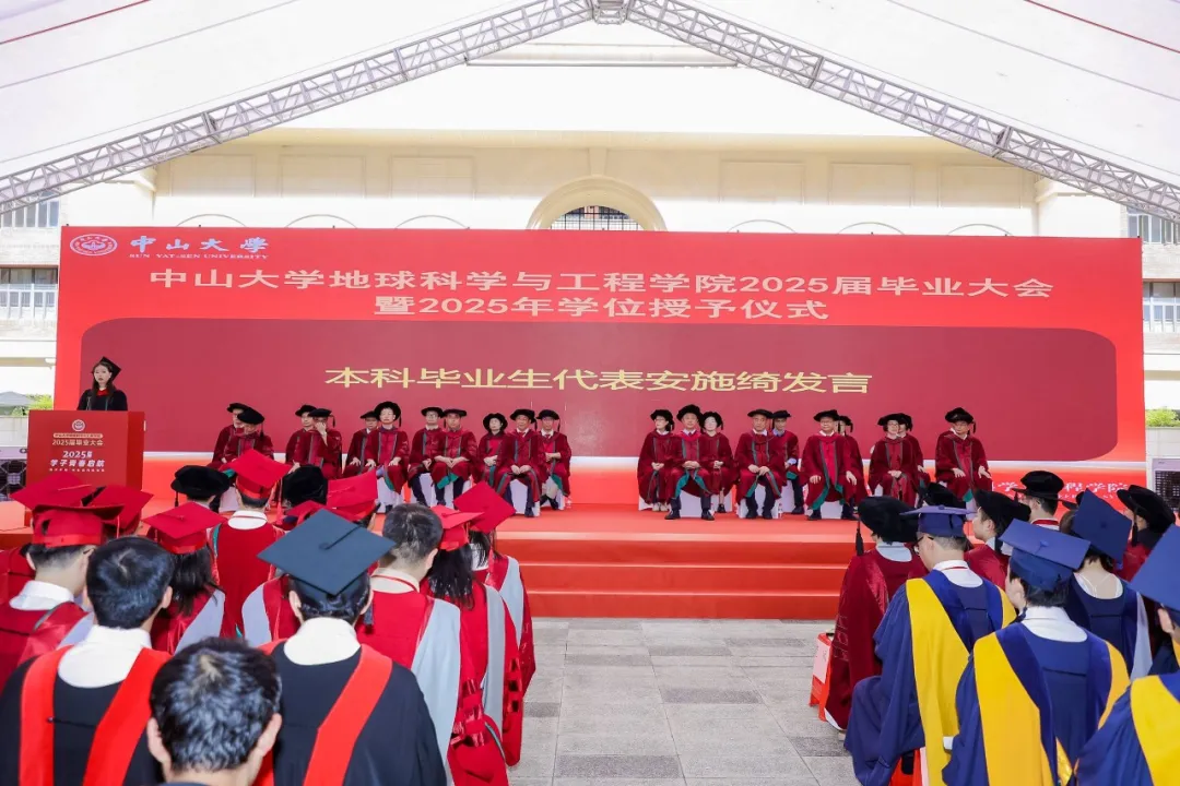 我是来自21级地质班的本科生安施绮。很荣幸今天能站在这里作为毕业生代表发言。首先,请允许我向辛勤培育我们的学院领导、各位老师,向默默支持我们的家人、朋友,致以最崇高的敬意和最衷心的感谢!谢谢!