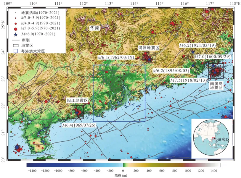 图3 广东省断层分布与地震活动性图(据李伦等,2024修改)