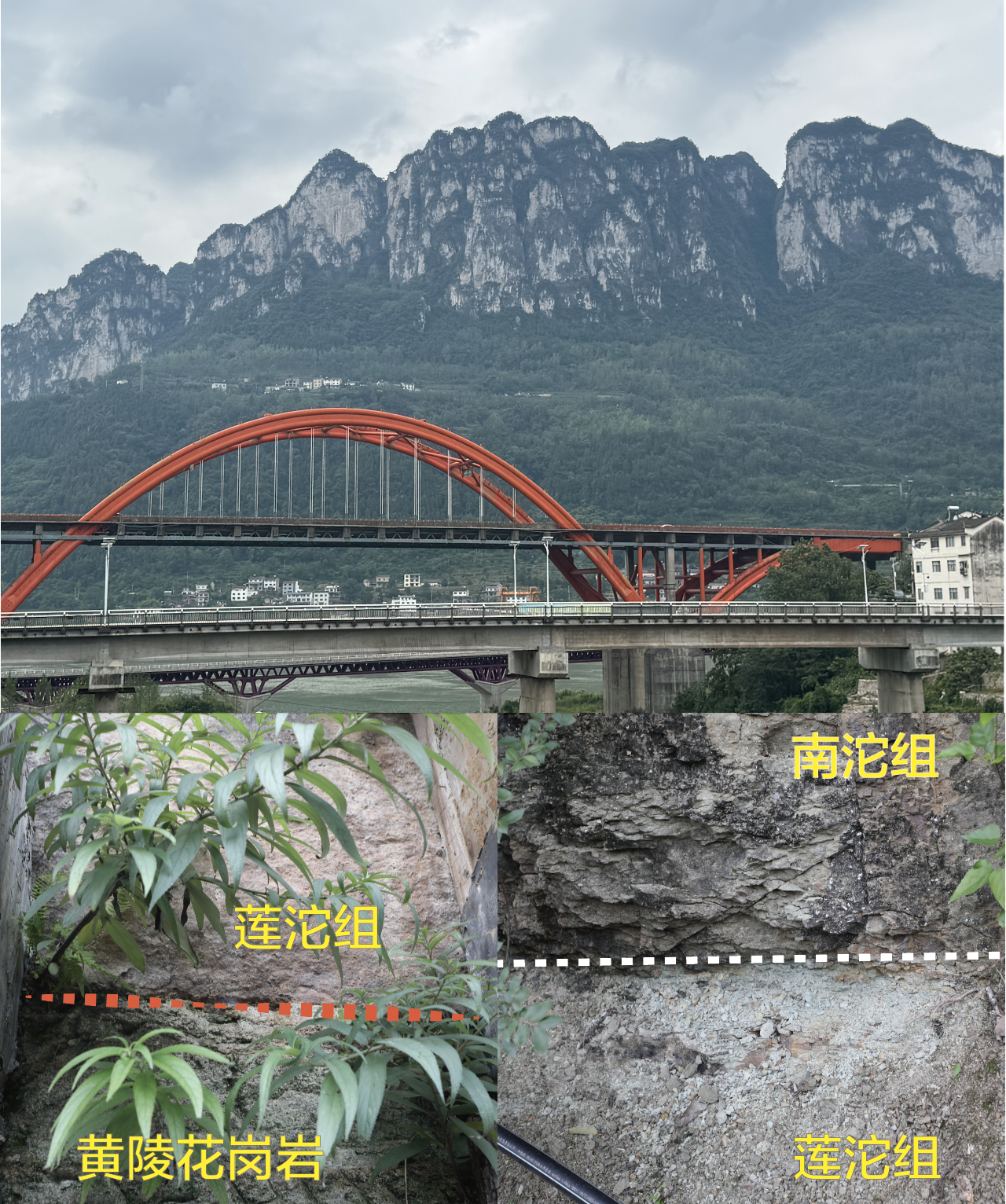 莲沱村是莲沱组地层的命名地,是观察莲沱组和南沱组地层界线的绝佳处。新元古代拉伸纪,扬子板块从罗迪尼亚超大陆边缘裂解,在变质结晶基底之上,开始了华南大陆沉积盖层的发育,莲沱组代表温暖沉积环境的陆相碎屑岩沉积应运而生。莲沱组之后,地球进入了“雪球地球”时期,全球冰封,南沱组冰碛砾岩沉积地层以平行不整合覆盖在莲沱组之上。沉积地层如同记录地球历史的 “书页”:从莲沱组细颗粒砂岩-粉砂岩,经中层薄层湖泊相沉积,到上层粗杂冰碛砾岩,沉积环境清晰地呈现了区域气候从暖干渐冷、步入冰期的演变。而莲沱组与南沱组之间印证两组地层沉积间断的“小小”的平行不整合,却是跨越了大约六千万年的漫长岁月。