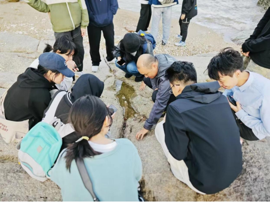 图 :洪老师在淇澳岛和学生们野外交流探讨