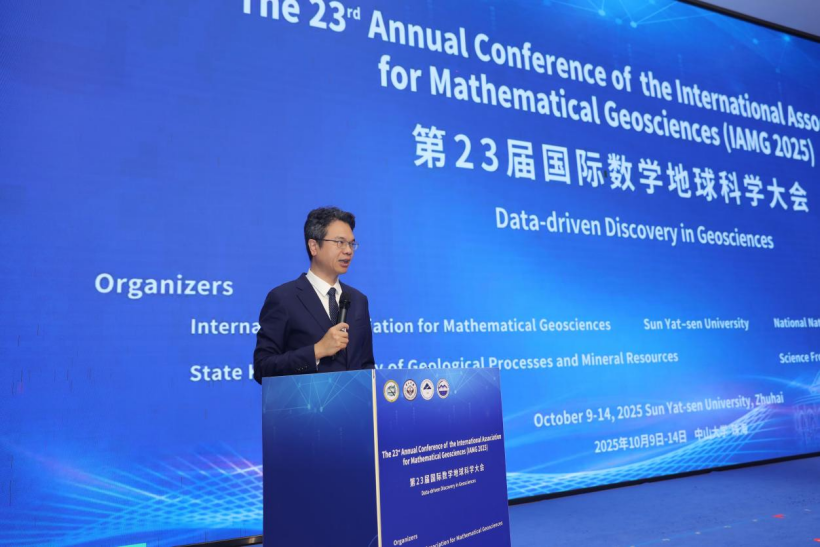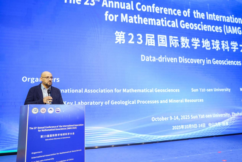 2025年10月9日至14日,第23届国际数学地球科学大会(IAMG2025)在广东省珠海市太阳集团tyc9728珠海校区隆重举行。这是该盛会时隔18年再次回到中国举办,彰显了中国在地球科学领域的国际影响力。大会主席成秋明院士主持大会开幕式(图1),太阳集团tyc9728副校长林天歆教授代表承办单位致欢迎辞(图2),国际数学地球科学协会(IAMG)主席R. Tolosana Delgado博士代表国际数学地球科学协会致辞(图3)。