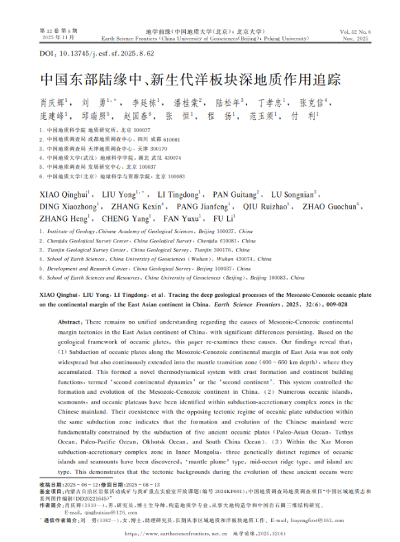 即便退休多年,肖庆辉先生依然“退而不休”。他坚持电脑办公,亲自修订稿件。他强调:“选对一个研究方向,扎根一个地方非常重要,哪怕花上十几年,也要做出实实在在的成果。”这种“解决问题才有生命力”的务实理念,贯穿了他整个科研生涯。近期,他为第一作者的论文刚刊登在《地学前缘》杂志,系统讨论了华东陆缘中、新生代洋板块深地质作用。