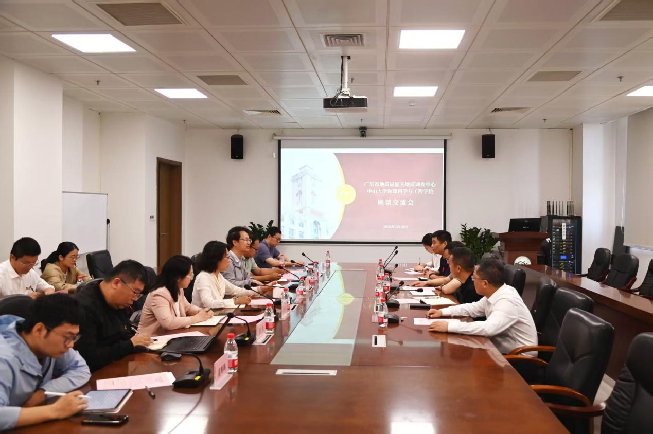 2026年3月18日上午,广东省地质局韶关地质调查中心党委书记、主任赖啸宇一行访问ok138cn太阳集团,双方就产学研融合与人才培养等议题举行座谈,旨在深化合作,凝聚共识。广东省地质局韶关地质调查中心副主任陈强、副主任(总工程师)欧阳志侠等陪同考察,学院院长王伟涛、党委书记孔晓慧、副院长沈旭章、副院长郑义、副书记徐永怡和部分教师代表出席了交流活动。