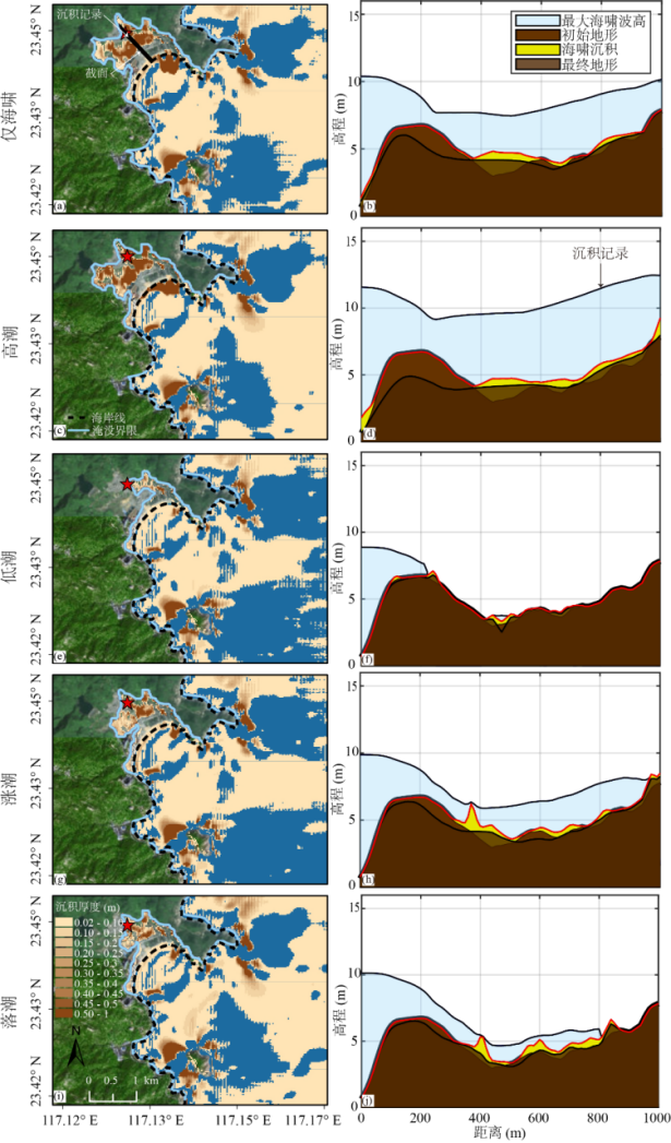 近日,我院李琳琳教授团队联合京都大学防灾研究所NobuhitoMori教授、台湾阳明交通大学Yu-LinTsai助理教授,在南海海啸沉积形成机制研究方面取得新进展。相关成果以“Effects of Astronomical Tide on Tsunami-Induced Sediment Transportation: A Case Study of Nan'ao Island in the South China Sea”为题,发表于国际海洋科学领域期刊Journal of Geophysical Research: Oceans(JCR:3.4/Q1)。该研究聚焦受潮汐影响显著的海岸环境下天文潮对海啸传播与沉积形成的影响,揭示了不同潮位阶段可显著改变海啸淹没范围及沉积保存结果,为南海古海啸沉积解释和海啸灾害评估提供了新的科学依据。