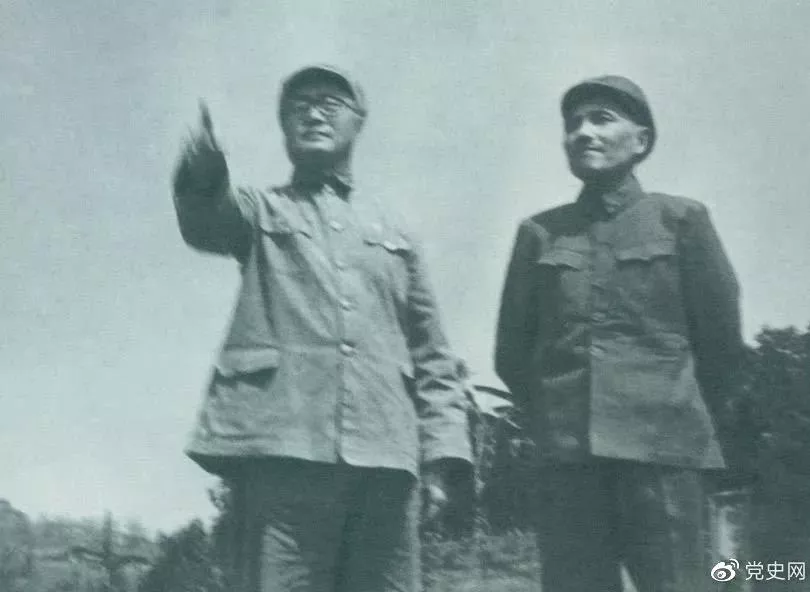 图为刘伯承司令员和邓小平政委指挥渡江准备工作。