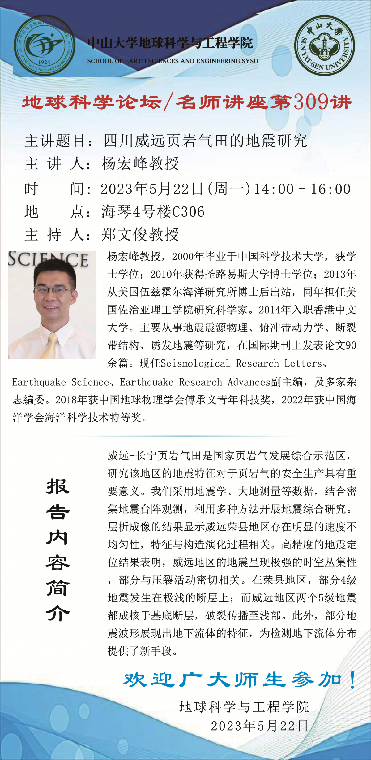 讲座预告 | 地球科学论坛第309讲:四川威远页岩气田的地震研究
