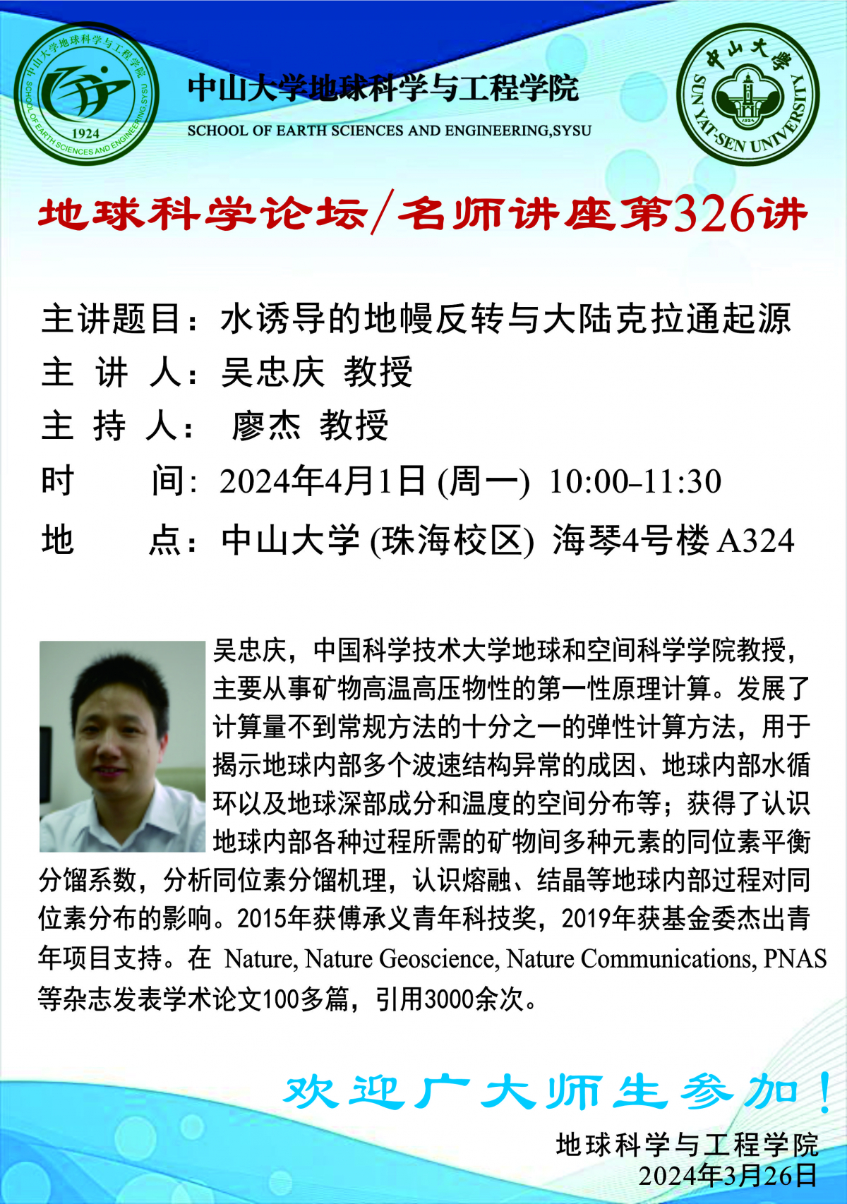 讲座预告 | 名师讲座第326讲